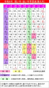 厄年表(九星方位)